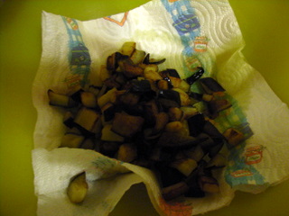 - Fry the eggplants, do not put all the eggplants at the same time, but cook them a little at a time, adding oil as needed '.