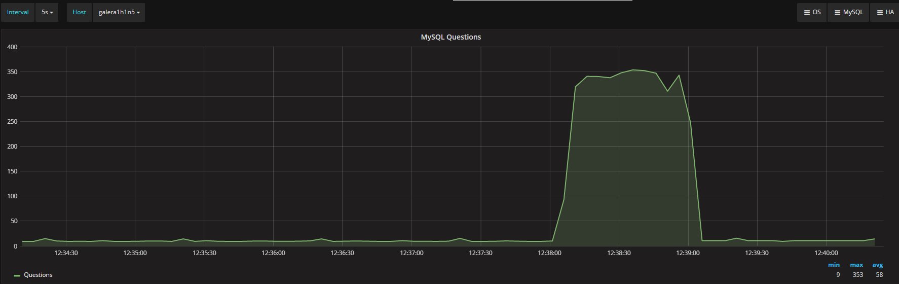 AT the same time the number of "questions" against PXC and MySQL very similar: